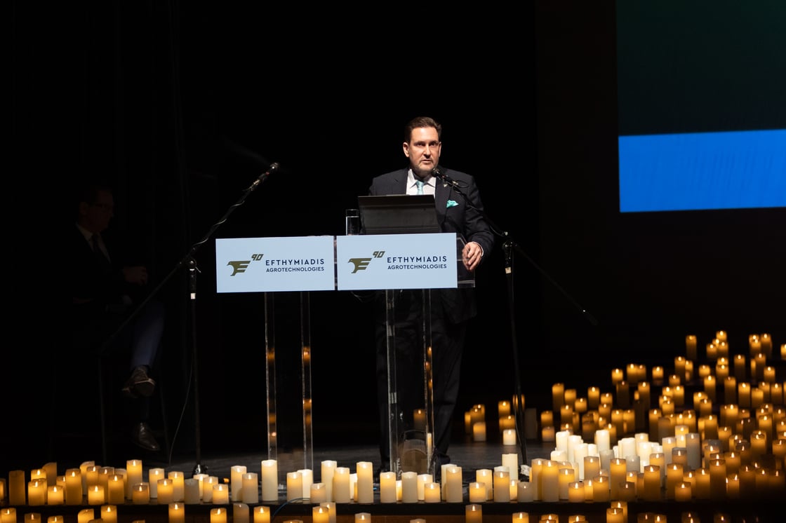 Θεσσαλονίκη, 02 Φεβρουαρίου 2026 - Το παρών στην επετειακή εκδήλωση εορτασμού για τα 90 χρόνια του Ομίλου Efthymiadis Agrotechnologies, στο Μέγαρο Μουσικής Θεσσαλονίκης, που πραγματοποιήθηκε στις 30 Ιανουαρίου 2026, έδωσαν πάνω από 1.200 προσκεκλημένοι ανάμεσά τους εκπρόσωποι της κυβέρνησης, της τοπικής αυτοδιοίκησης, της ακαδημαϊκής, ερευνητικής και επιχειρηματικής κοινότητας καθώς και συνεργάτες από όλη την Ελλάδα. Την εκδήλωση τίμησε με την παρουσία του η Α.Θ.Π. του Οικουμενικού Πατριάρχη κ.κ. Βαρθολομαίου, ο οποίος στην καταληκτήριο ομιλία του επεσήμανε μεταξύ άλλων τους κινδύνους της οικολογικής κρίσης.